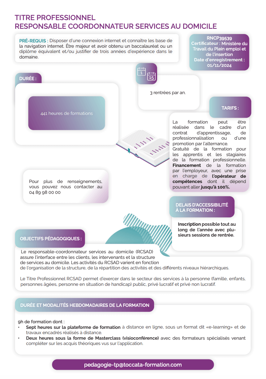 responsable-coordonnateur services au domicile Le TITRE PRO RCSAD en alternance (responsable-coordonnateur services au domicile) est l’opportunité parfaite pour vous !